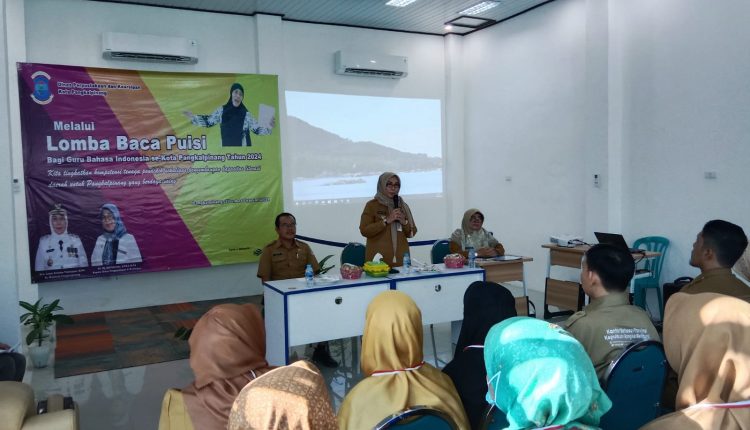 PANGKALPINANG – SUMBERHUKUM.ID, Dinas Perpustakaan dan Kearsipan Kota Pangkalpinang gelar Lomba Baca Puisi bagi Guru Bahasa Indonesia se-Kota Pangkalpinang tahun 2024 di Lantai II Gedung Perpustakaan Kota Pangkalpinang, Selasa (20/2/2024).