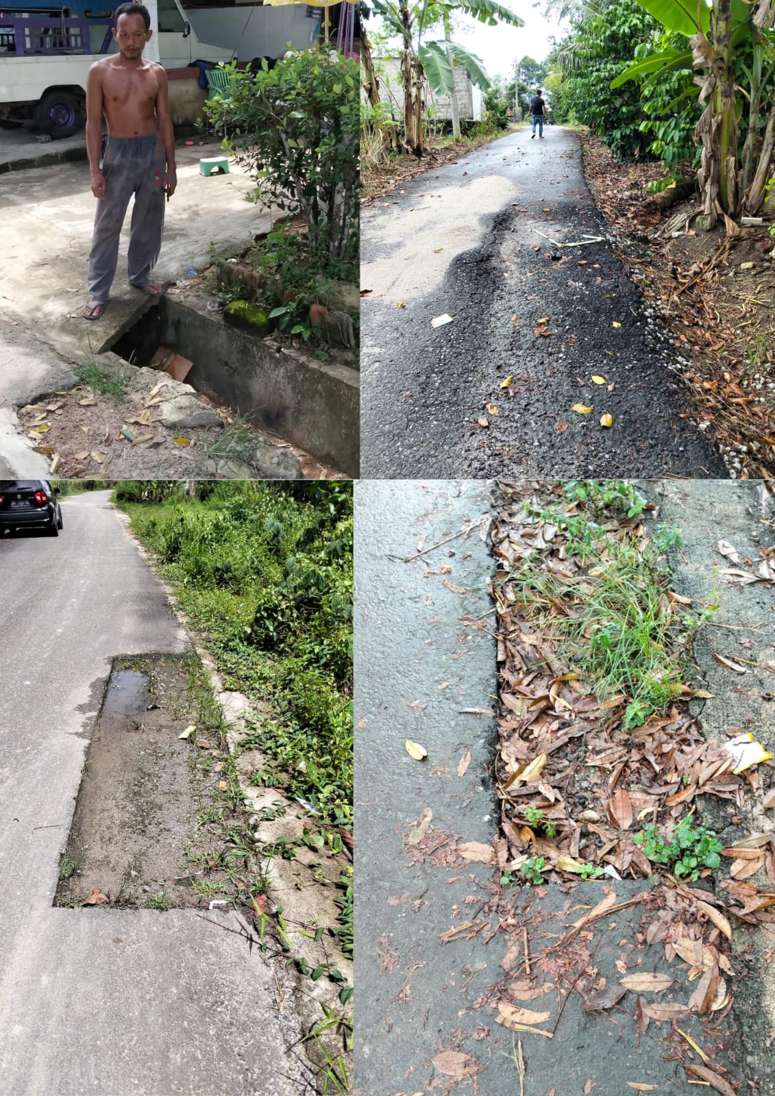 Juga menurut warga setempat mengatakan pemborong yang melaksanakan proyek ini sangat lah tidak profesional dalam pengaspalannya terlihat tebaran bertamburan antara aspal, batu pasir tidak menyatu sampai sekarang hampir mencapai sepuluh ( 10) lobang yang terlihat bekas di paching tampak sudah tumbuh rumput liar juga tanah yang bekas yang sudah di Patching sudah menggerus jatuh ke saluran drainase jalan,juga bekas patching tersebut sering membuat celaka terjatuh pada pengguna jalan.